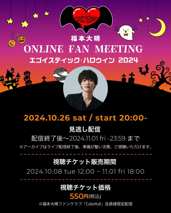 Taisei Fukumoto ONLINE FAN MEETING “Egoistic Halloween” 2024 is confirmed!